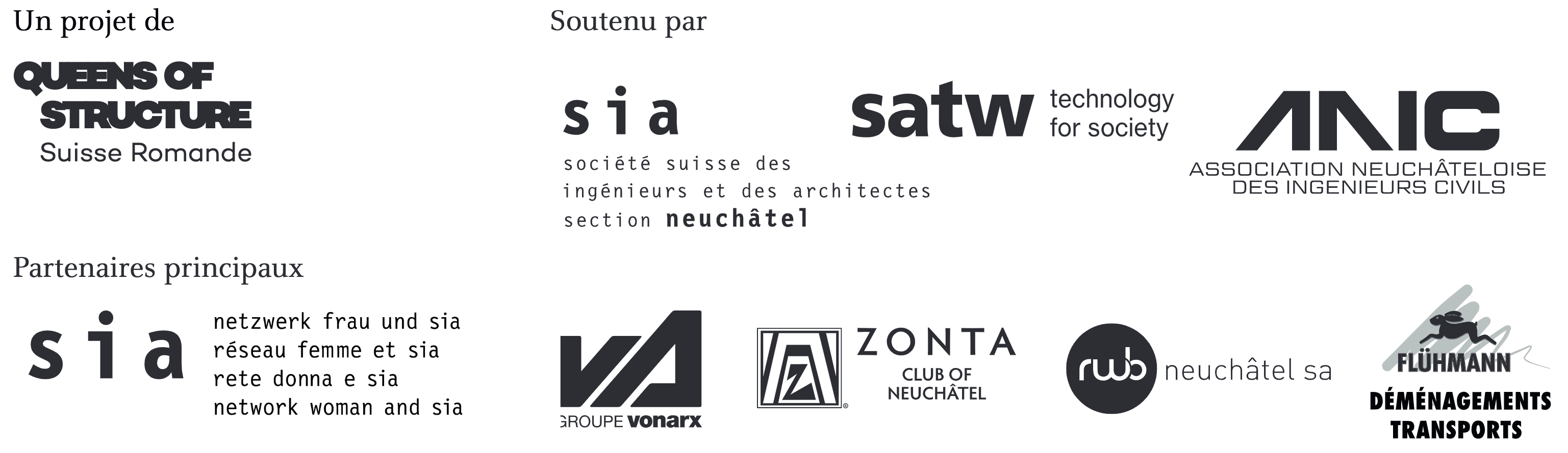 L’exposition Queens of Structure – Neuchâtel est portée par la SIA Neuchâtel et l’Association neuchâteloise des ingénieurs civils (ANIC), avec le soutien de l’association Queens of Structure Suisse Romande.